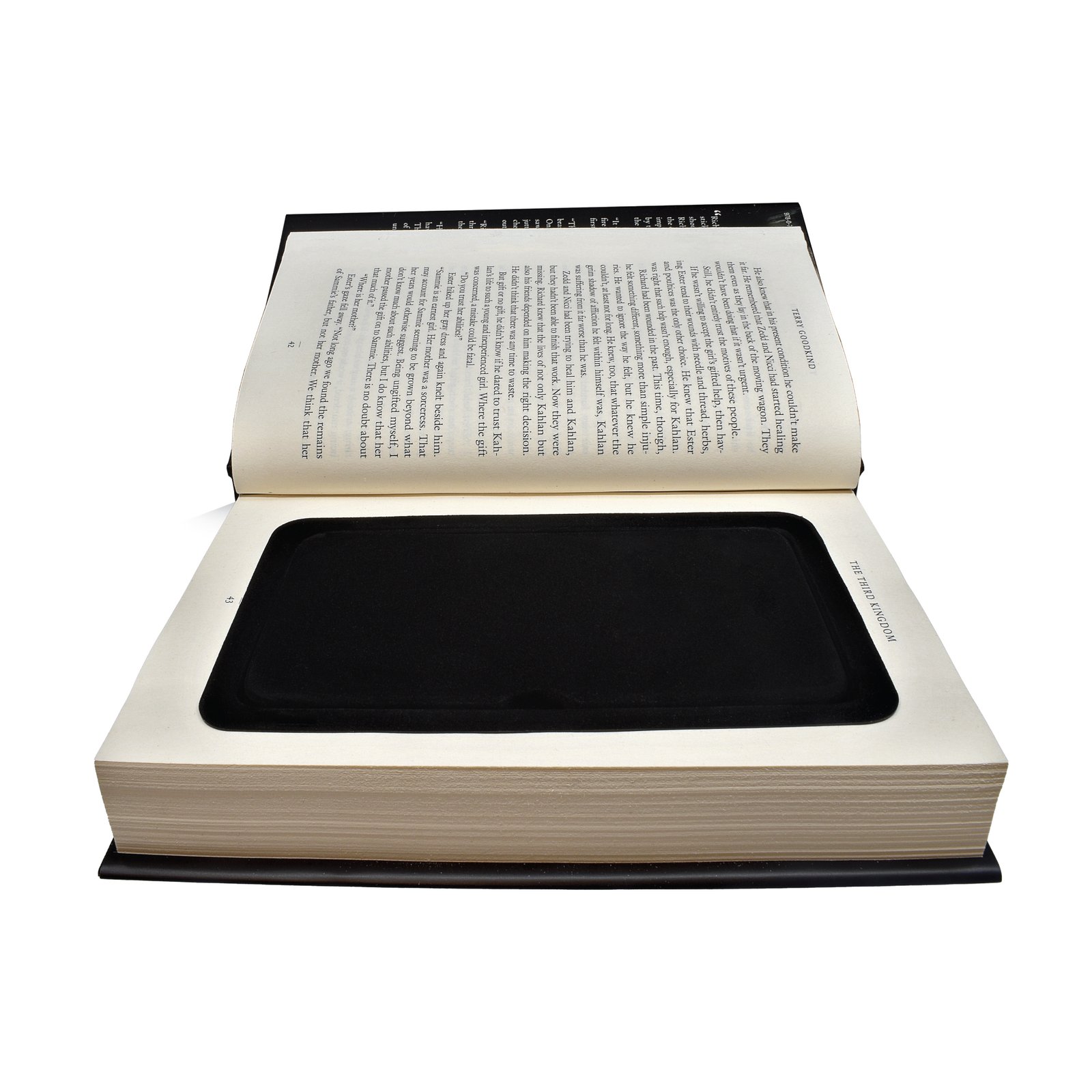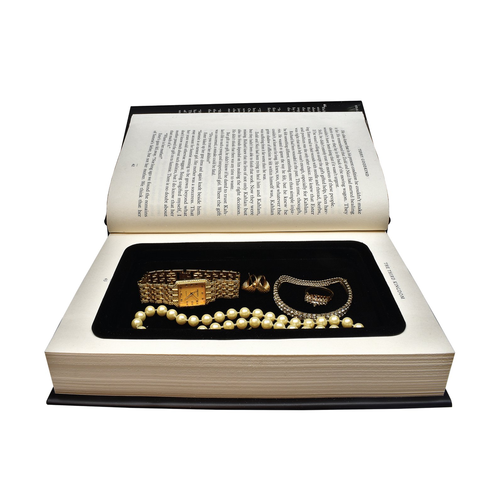With our Book Safes you can hide your valuables in the last place a thief would think to look. It has a hollowed-out book compartment that will become your secret place. The inner compartment is made of soft velour and a fitted cover that ensures that your valuables are “locked” in place and won’t fall out even if the book is dropped. Great for traveling as an unassuming book on a bedside table, as well as part of your library. The book’s sleeve is authentic, complete with an ISBN barcode on the back, a synopsis of the book on the interior of the sleeve, and peer reviews on the back. The pages look real, and the first few pages include the title of the book, other books written by the author, a publication and dedication page, and a page with a poem written by the author’s contemporary. Our book safe box has all the “markings” a real novel has and will not look out of place among your other books.