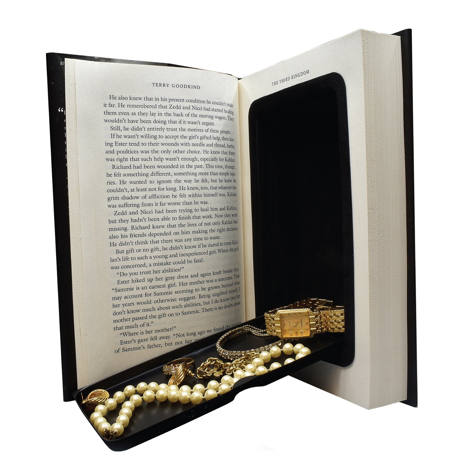 Design: The Book Safe’s inner compartment is made of soft velour and a fitted cover that ensures that your valuables are “locked” in place and won’t fall out even if the book is dropped. The book’s sleeve is authentic, complete with an ISBN barcode on the back, a synopsis of the book on the interior of the sleeve, and peer reviews on the back. The pages look real and the first few pages include the title of the book, other books written by the author, a publication and dedication page, and a page with a poem written by the author’s contemporary.