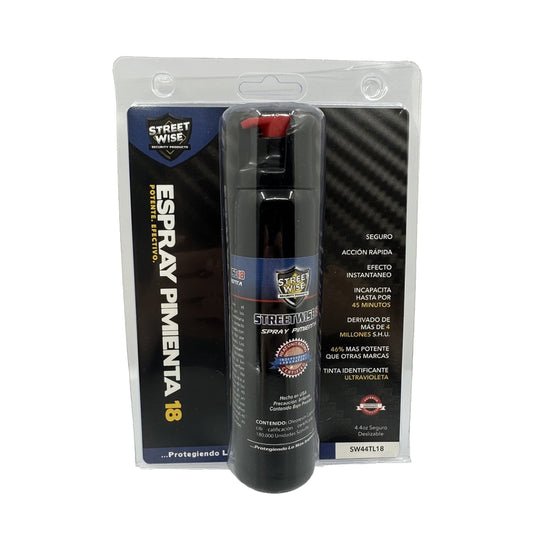 Lab Certified Streetwise 18 Stream Pepper Spray, 4.4 oz. Twist Lock With Spanish Label And Back Card.